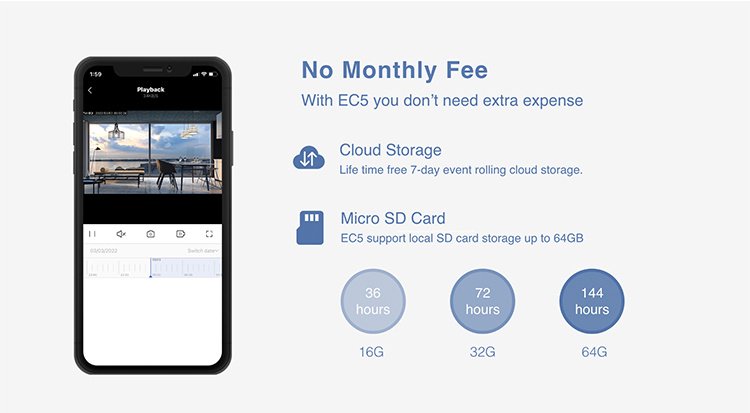 - Multi Storage Options – Cloud Storage & Local MicroSD Card Storage (Up to 256GB)